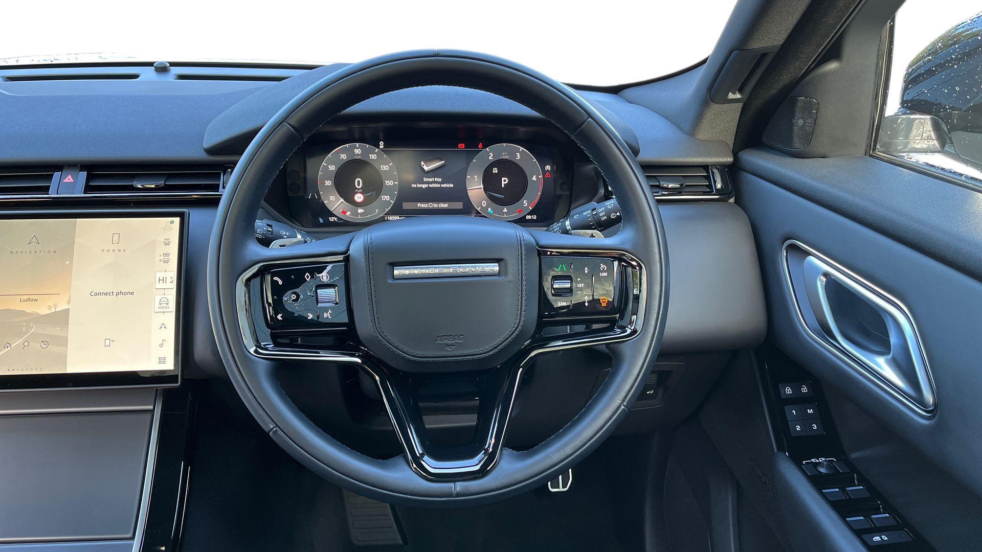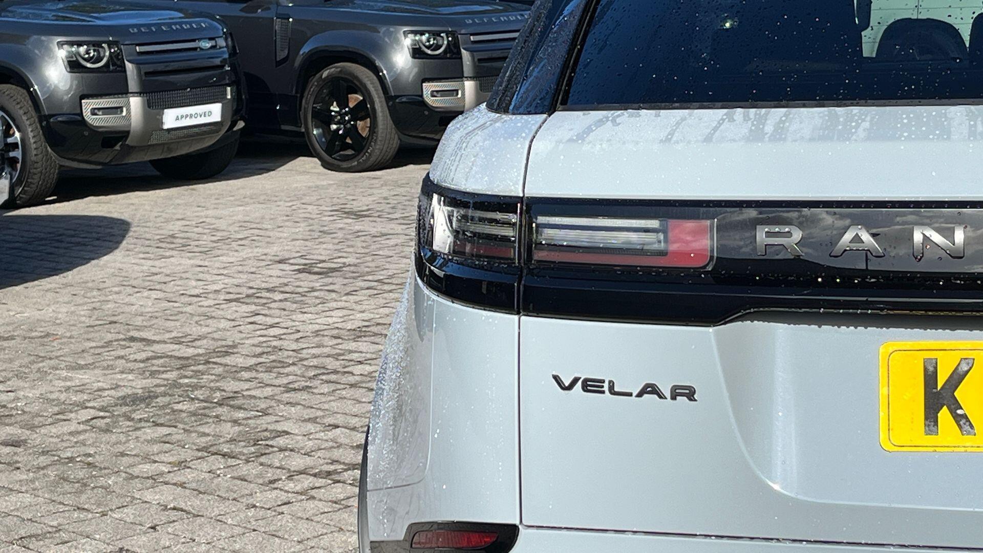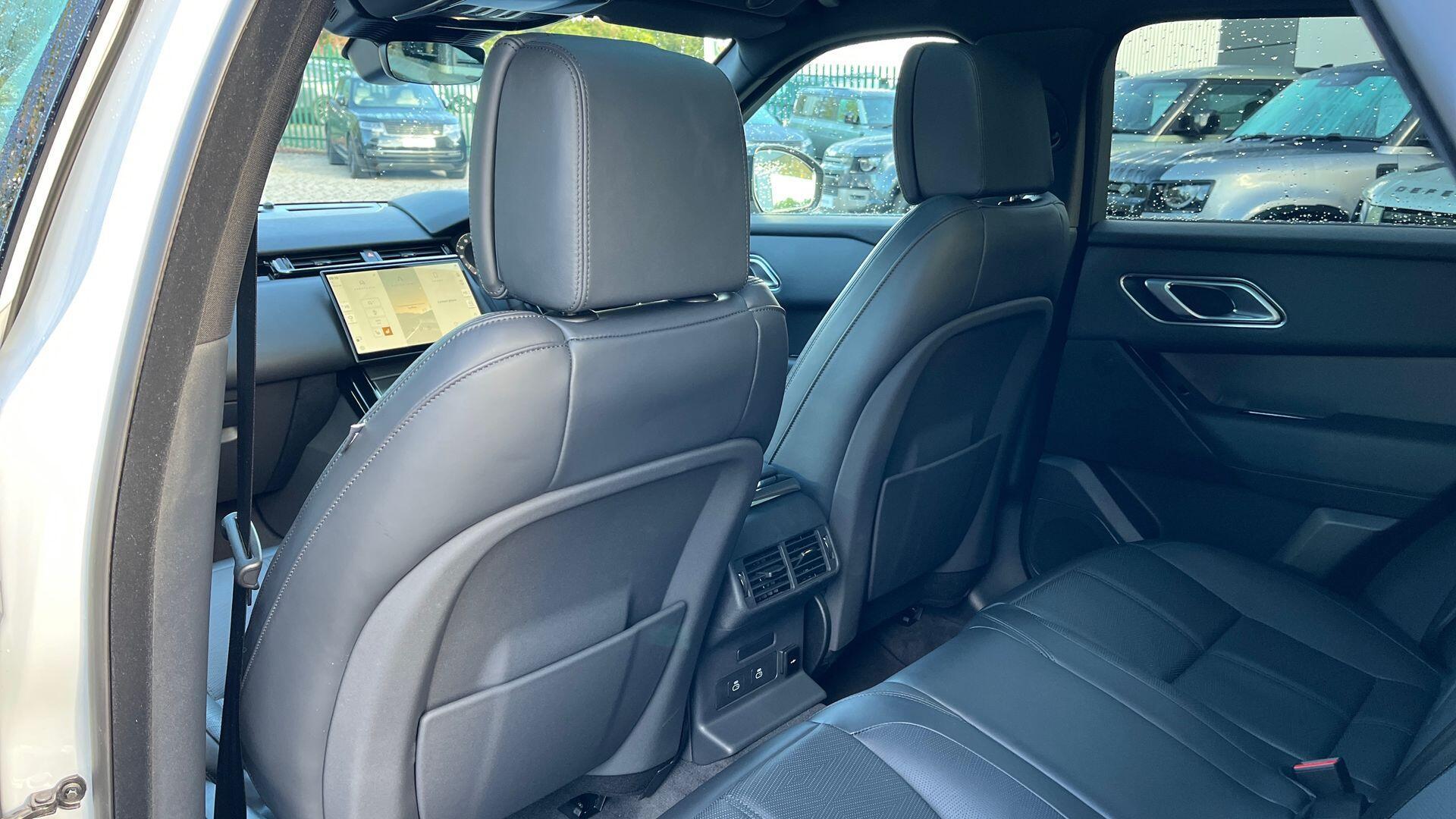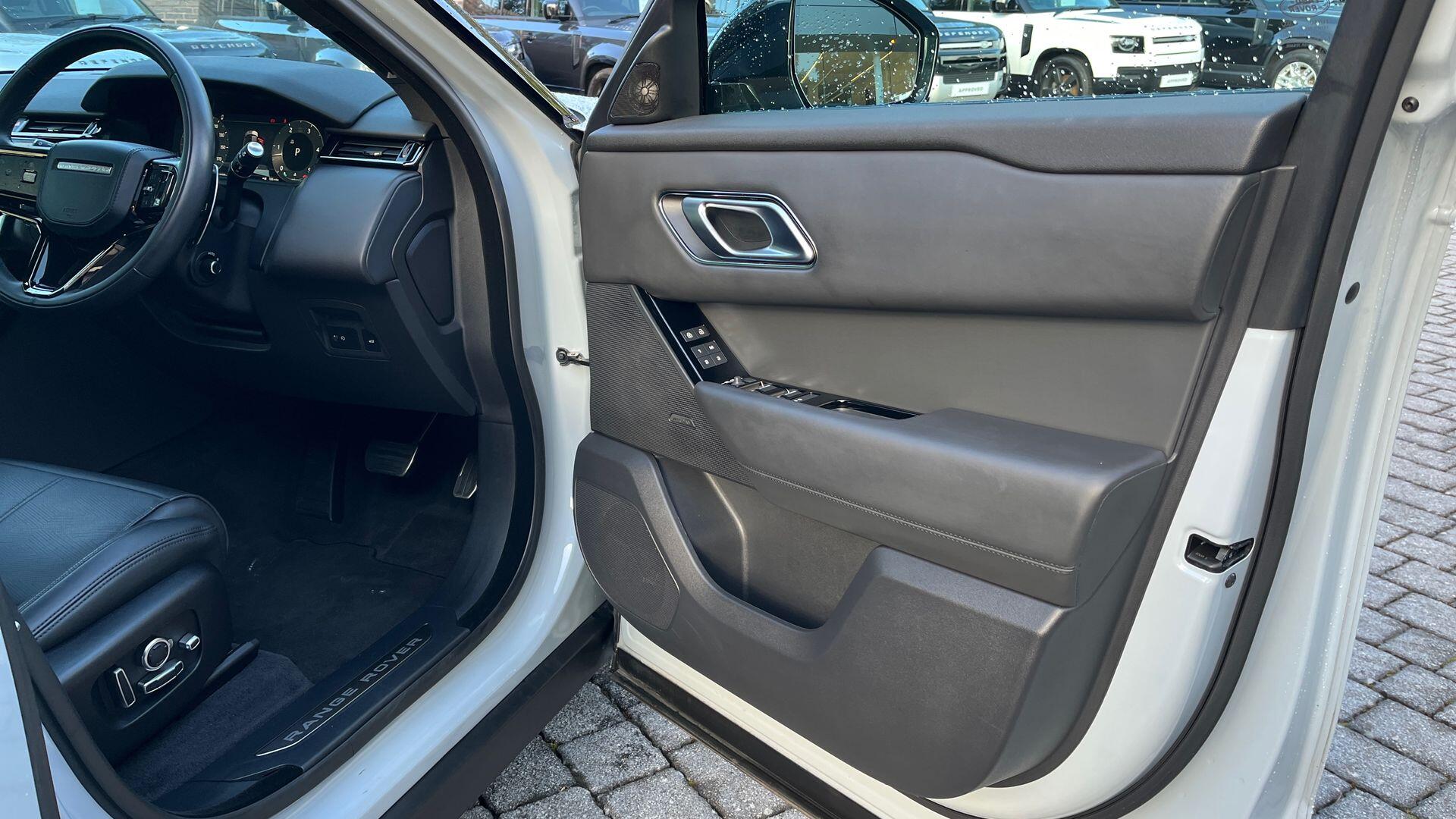 Secure Tracker Pro Android AutoApple CarPlayBluetooth connectivityOnline Pack with Data PlanPower Socket Pack 2RemoteWireless device chargingWireless device charging Adaptive cruise control with steering assistAdaptive Cruise Control with Steering AssistBlind Spot AssistBlind spot assistDriver condition monitorDriver Condition MonitorFront and Rear Parking AidFront and rear parking aidRear Collision MonitorRear collision monitorTerrain Response with Dynamic ProgramTraffic Sign Recognition and Adaptive Speed Limiter Acoustic laminated windscreenAll season tyresHeated windscreenRear animated directional indicatorsRear fog lightsSliding panoramic roofUnpainted brake calipers Automatic headlightsPixel LED headlights with signature DRL 20-way front seats with driver memory and rear power reclineBright metal pedalsCarpet matsCarpet matsDark Anodised trim finisherElectrically adjustable steering columnElectrically adjustable steering columnExtended leather upgradeHeated steering wheelHeated steering wheelLeather steering wheel with Moonlight bezelMetal front treadplatesRear centre headrestTwo-zone Climate Control Adaptive DynamicsAdaptive dynamicsElectronic air suspensionElectronic air suspensionSingle speed transfer box DSC - Dynamic Stability ControlEmergency brakingEmergency BrakingHill launch assistIntrusion sensorIntrusion sensorKeyless entryLane keep assistLane Keep AssistLow traction launchPower operated child locksRear Traffic MonitorRear traffic monitor 21" Style 5109 Satin Dark Grey3 seat bench in 2nd row380mm front and 325mm rear brakes380mm front brakes and 325mm rear brakes3rd brake light3x3 point rear seatbelts8 speed automatic transmissionAll terrain progress controlAll-season tyresAmbient lightingAndroid Auto (subject to availability)Anti-lock braking system (ABS)Apple CarPlay (subject to availability)Auto dimming interior rear view mirrorAutomatic headlamp levellingBody coloured bumpersBody-coloured roofBoot protection plateBrake pad wear indicator warning lightCornering brake controlCurtain airbagsCustomer configurable autolockDAB radioDigital Audio Broadcast (DAB) radioDoor side intrusion beamsDriver airbagDriver/passenger sunvisors with illuminated vanity mirrorsEbony interior with Windsor leatherEbony morzine headliningeCall emergency call systemElectric windows with one touch open/close and anti trapElectronic brake force distributionElectronic parking brakeElectronic traction controlFlush deployable exterior door handlesFollow me home headlightsFront and rear seatbelt reminderGlobal lock and unlock switch on driver doorHeated rear window with timerHeated washer jetsHeated electric power fold door mirrors with approach lights and auto-dimming driver sideHill descent controlImmobiliserInControl remoteIsofix system on outer rear seatsLand Rover InControl appsLoadspace coverLock only switch on front passenger doorLocking wheel nutsMeridian Sound SystemMetal front tread platesMetal load space scuff platesOnline pack with data plan - VelarOpen differential with torque vectoring by brakingOverhead lighting consoleOverhead stowage for sunglassesPassenger airbagPassive front headrestsPerimetric alarmPivi Pro (Connected)Pivi pro with connected navigationPower fold auto-dimming heated door mirrors with memory and approach lightsPower socket pack 2 - VelarPowered tailgate / boot lidRain sensor windscreen wipersRear air ventsRear airbagsRear CameraRear side wing doorsRear wash/wipeRemote central lockingRoll stability controlService indicatorSide airbagsSingle front passenger seatSpeed proportional electronic power assisted steering (EPAS)Steering wheel mounted controlsTailgate/boot lid spoilerTraffic sign recognition with adaptive speed limiterTrailer stability assistTrip computerTwin front cupholdersTwin sliding front centre armrestTyre pressure monitoring system (TPMS)Tyre Pressure Monitoring System (TPMS)Velar badgeVoice control system