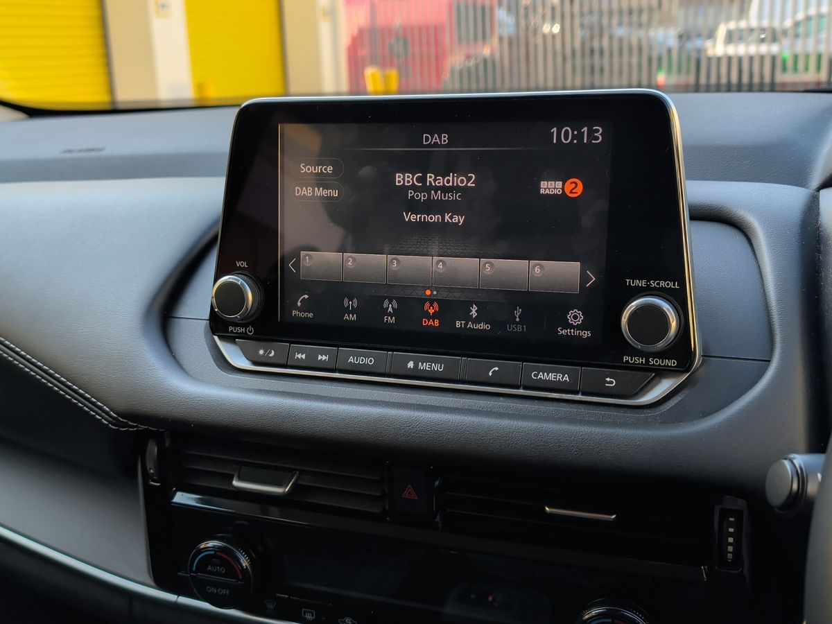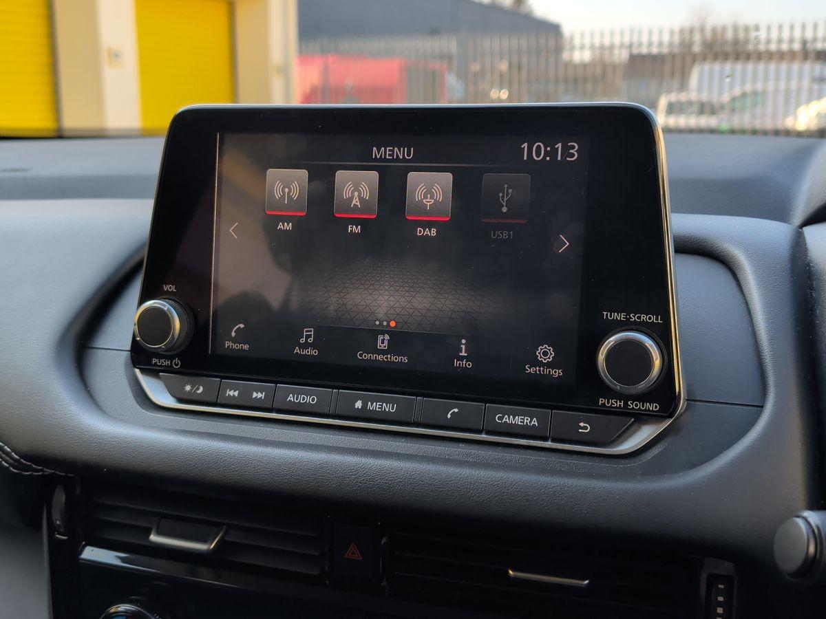 Two rear isofix child seat anchorage points with top tether 7" High definition full colour TFT screen combimeter Android auto/Apple CarPlay (Wired) Blind spot warning Drive modes (sport normal eco) Electric speed sensitive power steering Emergency and breakdown call Idle stop/start system Intelligent Cruise control (ICC) Intelligent driver alert system Intelligent forward collision warning Intelligent lane intervention Lane departure prevention Lane departure warning system Maximum speed limiter Nissan connect 8" touchscreen infotainment system Push button starter Rear cross traffic alert Rear parking sensors